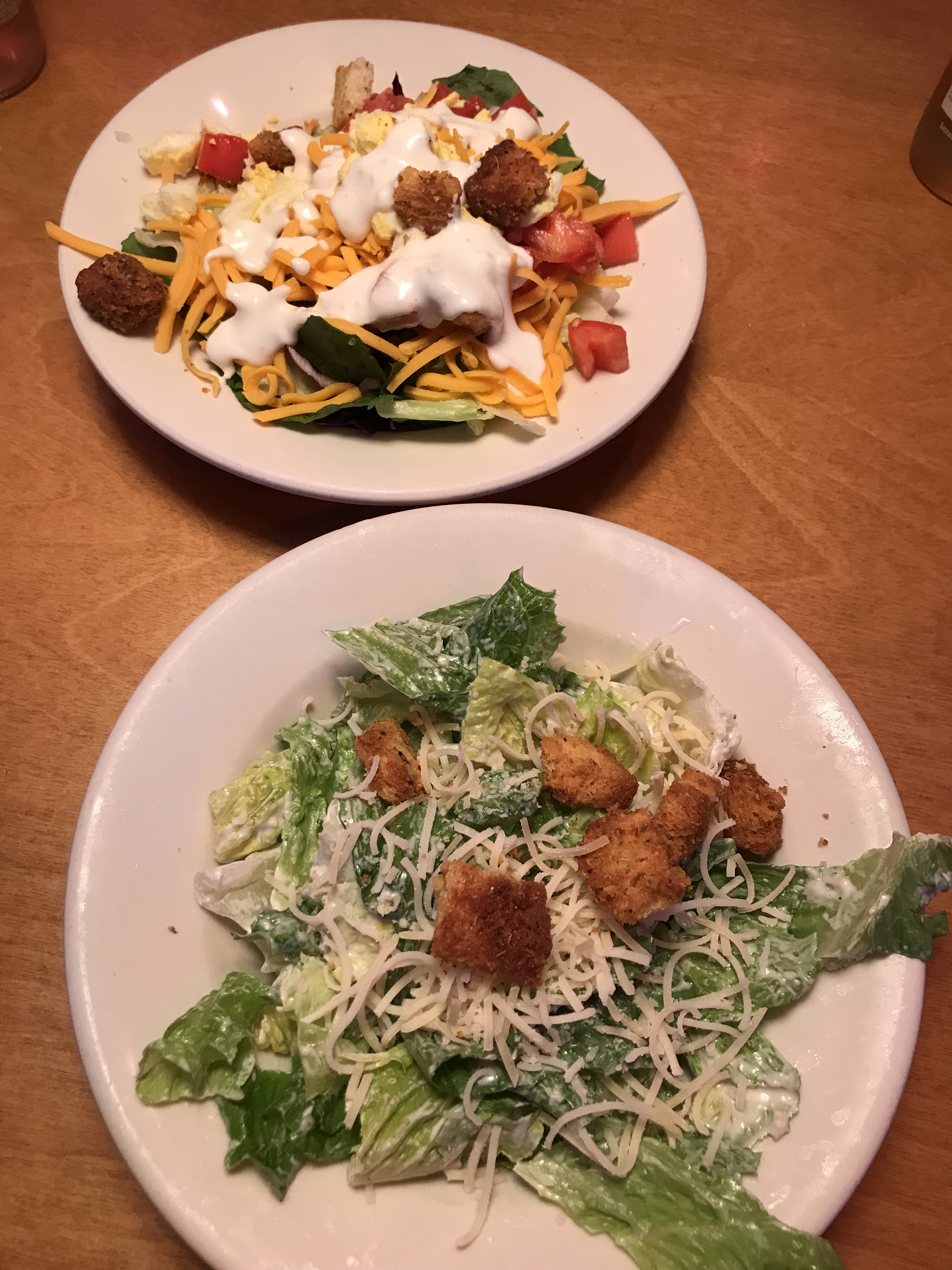 The entrees (specifically steaks since that’s what we got) include two sides. They have many sides to choose from. One interesting side offered is a cup of chili. I thought that was different anyway. Also, they offer a house salad or a caesar salad as a side and I love that!